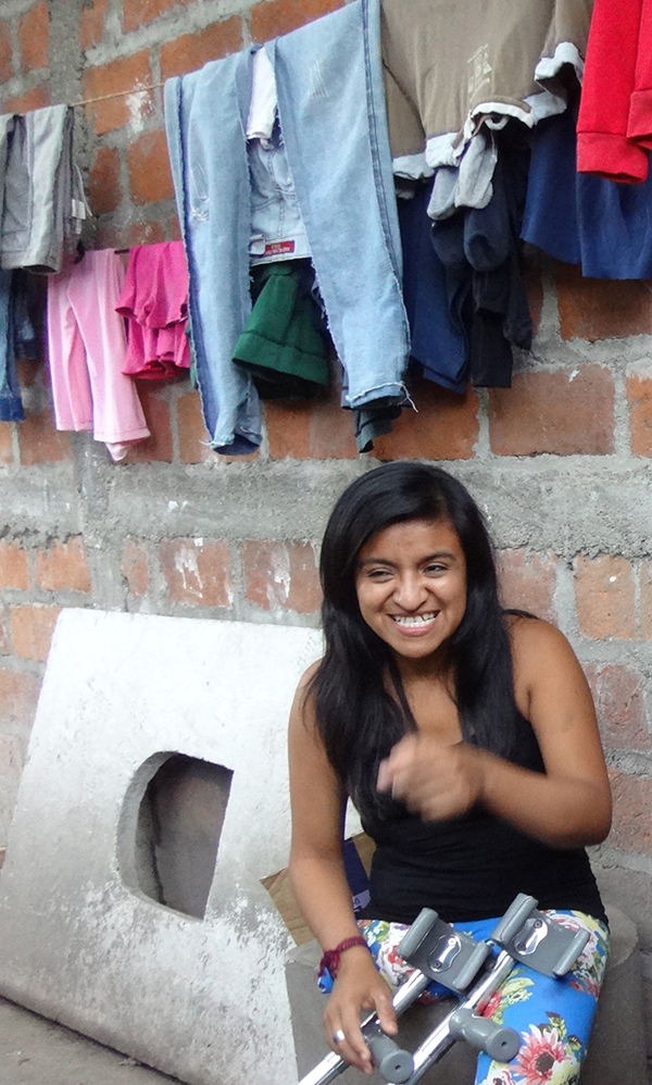 Gesundheitlich geht es Yamileth gut. Zwar trägt sie ihre Prothese nicht, weil die Wege so schlecht sind und es auch keine fachgerechte Versorgung für die Prothese gibt. Aber Yamileth kommt mit ihren Krücken gut zurecht.